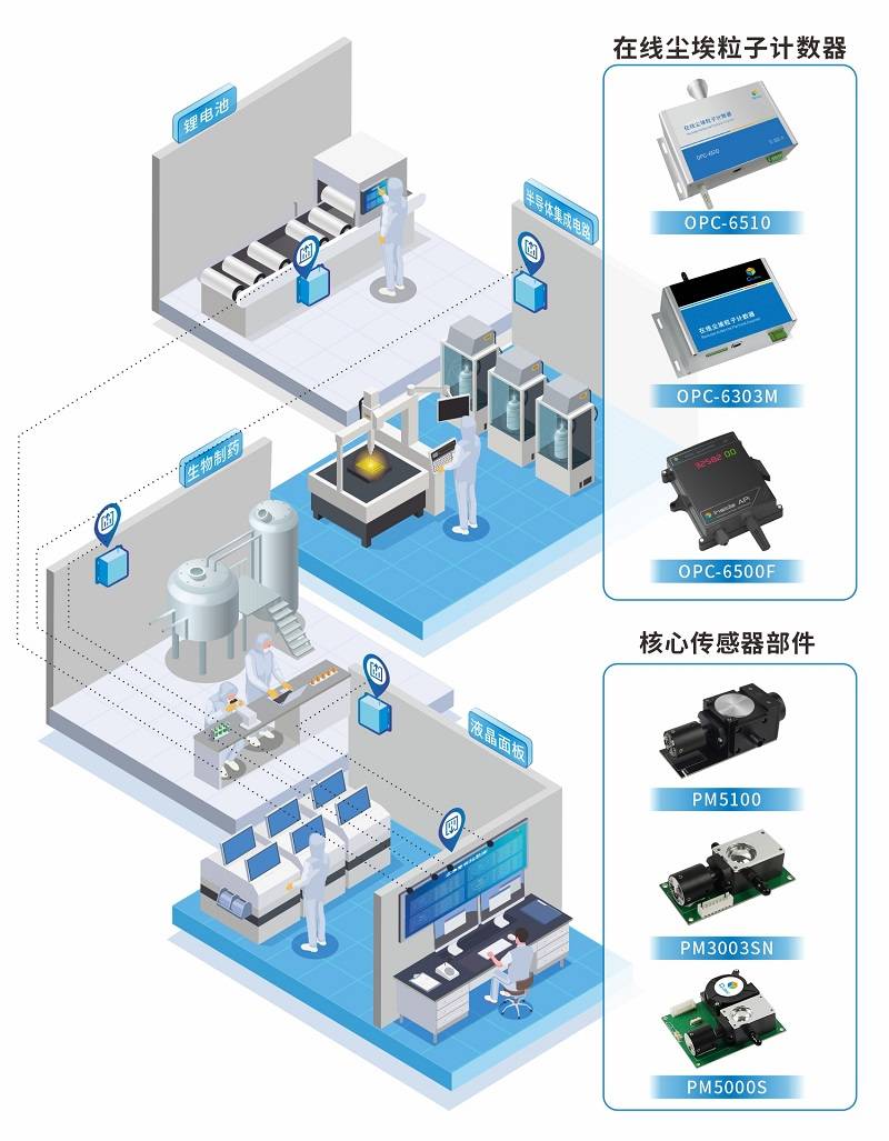 隨著新能源鋰電池、半導(dǎo)體、生物制藥、液晶面板等領(lǐng)域的快速發(fā)展,對(duì)生產(chǎn)環(huán)境的潔凈度提出了更高的要求,有效控制潔凈室空氣中的塵埃粒子濃度至關(guān)重要。按照國(guó)家相關(guān)規(guī)定,潔凈室在設(shè)計(jì)、建造以及交付運(yùn)行以后,都需要對(duì)其性能和合理性進(jìn)行綜合評(píng)價(jià)分析。那么,企業(yè)為了滿足生產(chǎn)條件搭建符合標(biāo)準(zhǔn)要求的潔凈室環(huán)境,該如何實(shí)現(xiàn)對(duì)塵埃粒子的監(jiān)測(cè)呢?