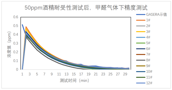 甲醛氣體背景濃度下開機后,酒精介入測試曲線圖