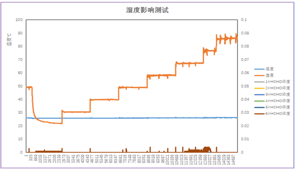 1、交叉氣體的干擾。由于乙醇氣體也能夠與電化學(xué)甲醛傳感器中的電解液發(fā)生反應(yīng),因此電化學(xué)甲醛傳感器在家居環(huán)境中使用時,會受到烹飪、飲酒等動作中散發(fā)出的乙醇氣體的影響,出現(xiàn)測量值異常高的情況。