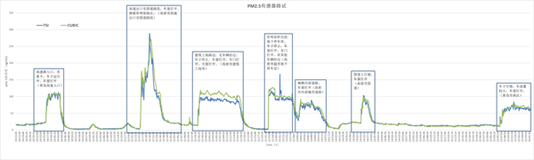 光散射技術(shù)在整車(chē)上的前裝應(yīng)用,和室內(nèi)家居場(chǎng)景完全不同,在技術(shù)上遇到了多種困難和挑戰(zhàn)。首先,車(chē)艙內(nèi)的空氣環(huán)境更為復(fù)雜。室內(nèi)家居環(huán)境如果長(zhǎng)期開(kāi)著凈化器或者新風(fēng)系統(tǒng),通過(guò)HEPA等過(guò)濾后,只要不是在霧霾天經(jīng)常開(kāi)窗通風(fēng),一般室內(nèi)環(huán)境比較潔凈,大顆粒不多,1μm以下的小粒子居多。這個(gè)時(shí)候其實(shí)PM2.5與PM1.0的數(shù)值是非常接近的,那么我們通過(guò)香煙進(jìn)行傳感器標(biāo)定就合情合理,也有標(biāo)準(zhǔn)依據(jù)(GBT18801-2015使用紅塔山1916品牌的香煙作為標(biāo)準(zhǔn)塵源)。但是車(chē)艙內(nèi)的環(huán)境就完全不是這樣,經(jīng)常的開(kāi)車(chē)窗、開(kāi)汽車(chē)空調(diào)外循環(huán)都會(huì)把外界空氣引入到車(chē)內(nèi),而國(guó)道、高速、地下車(chē)庫(kù)、城市等不同道路上的環(huán)境粉塵構(gòu)成均不同,存在較大差異,如果繼續(xù)沿用室內(nèi)家居的粉塵傳感器,明顯無(wú)法做到準(zhǔn)確的塵源識(shí)別和測(cè)量。四方光電通過(guò)多年對(duì)光散射的技術(shù)積累和對(duì)應(yīng)用場(chǎng)景的深入理解,開(kāi)發(fā)出智能塵源識(shí)別算法(API算法),能夠有效識(shí)別出車(chē)艙內(nèi)的顆粒物構(gòu)成,實(shí)現(xiàn)精準(zhǔn)測(cè)量。