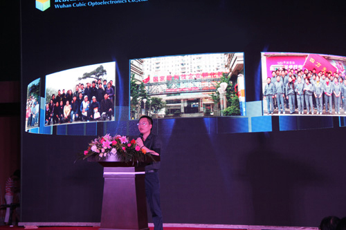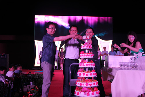晚上19:30,晚會(huì)正式開始,公司總經(jīng)理熊友輝先生、股東代表劉志強(qiáng)先生、員工代表鄔麗婭女士分別上臺(tái)致辭,回顧了公司創(chuàng)立十年來的點(diǎn)滴體會(huì)和感悟,真摯的話語(yǔ)表達(dá)了對(duì)公司的祝福與感恩之情,引起臺(tái)下全體員工的共鳴。隨后晚會(huì)共頒發(fā)了一個(gè)團(tuán)隊(duì)獎(jiǎng)和6個(gè)個(gè)人獎(jiǎng),分別是四方大雁團(tuán)隊(duì)獎(jiǎng)、四方守護(hù)者獎(jiǎng)、四方老黃牛獎(jiǎng)、四方愛因斯坦獎(jiǎng)、四方金算盤獎(jiǎng)、四方小蜜蜂獎(jiǎng)及四方伯樂獎(jiǎng),以表彰在公司發(fā)展過程中做出突出貢獻(xiàn)或優(yōu)異表現(xiàn)的團(tuán)隊(duì)和個(gè)人。接下來的T臺(tái)產(chǎn)品秀更是別樹一幟,由公司內(nèi)部挑選的六位男女模特手持公司產(chǎn)品展板,伴著時(shí)尚動(dòng)感的背景音樂走上T臺(tái),贏得在場(chǎng)觀眾不斷叫好,拿著相機(jī)拍個(gè)不停,在展示公司產(chǎn)品的同時(shí)也展示出四方光電員工的多才多藝。在最后伴隨著生日歌的慶生儀式上,公司領(lǐng)導(dǎo)帶領(lǐng)全體員工一起舉杯,共同祝福四方光電生日快樂。豐富多樣的美味自助餐、超大炫麗的LED屏、獨(dú)特的露天T臺(tái)、夢(mèng)幻設(shè)計(jì)的燈光,使得現(xiàn)場(chǎng)沉浸在一片歡樂祥和、浪漫溫馨的氛圍中。