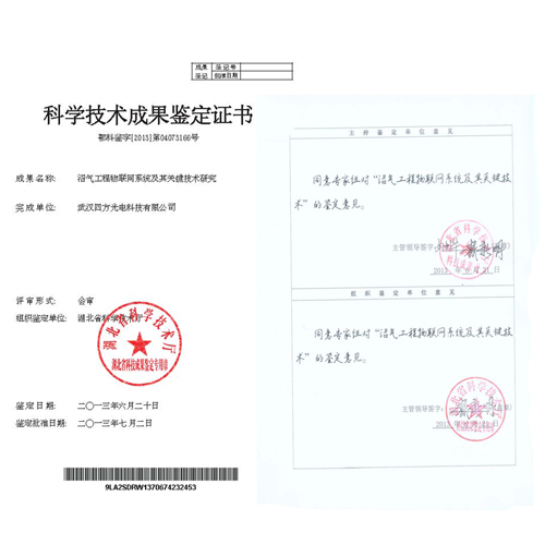 2013年6月20日,湖北省科技廳在武漢組織召開(kāi)了關(guān)于我公司“沼氣工程物聯(lián)網(wǎng)系統(tǒng)及其關(guān)鍵技術(shù)研究”的科技成果鑒定會(huì)。本次鑒定會(huì)由我國(guó)光纖傳感器專家姜德生院士擔(dān)任主任委員,委員會(huì)由來(lái)自國(guó)內(nèi)傳感器、物聯(lián)網(wǎng)系統(tǒng)及沼氣工程應(yīng)用等方面的知名專家組成。