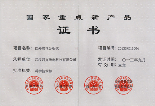 2013年9月5日,據(jù)國家科技部關(guān)于下達(dá)2013年度有關(guān)國家科技計(jì)劃項(xiàng)目的通知(國科發(fā)計(jì)[2013]571號),我公司“紅外煤氣分析儀”獲2013年國家重點(diǎn)新產(chǎn)品計(jì)劃立項(xiàng)(項(xiàng)目編號2013GRD11004)。