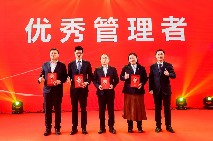 2022年公司員工勇于擔當、不辱使命,較好地完成了年度的各項工作目標?;顒蝇F(xiàn)場公司表彰了優(yōu)秀員工、優(yōu)秀新人、銷售之星、技術(shù)創(chuàng)新獎、優(yōu)秀管理者及優(yōu)秀團隊,各個獎項的優(yōu)秀員工代表與全體員工分享了自己和團隊在2022的奮斗歷程和經(jīng)驗感受,年會現(xiàn)場氛圍活躍,員工斗志昂揚。會場上,公司管理團隊與所有獲獎代表進行了合影,一起紀念這個充滿挑戰(zhàn)的年份。