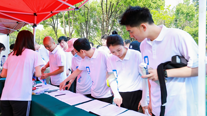 當天清晨,參賽者們便身著統(tǒng)一的運動T恤,在簽到處蓄勢待發(fā),煥發(fā)出青春的活力與熱情。工作人員清點人數(shù)、引領(lǐng)參賽員工簽到領(lǐng)取物資,確保安全措施落到實處。