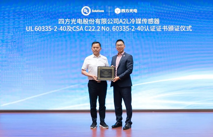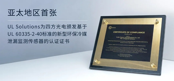 UL Solutions為四方光電頒發(fā)基于UL 60335-2-40標準的亞太地區(qū)首張A2L冷媒傳感器認證證書