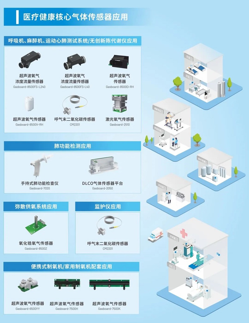 在醫(yī)療健康領(lǐng)域,四方光電憑借多年的研發(fā)及應(yīng)用經(jīng)驗(yàn),創(chuàng)新研制了超聲波氧氣傳感器、超聲波氧氣流量計(jì)、ETCO2傳感器等產(chǎn)品,這些醫(yī)用氣體傳感器具有測(cè)量精度高、響應(yīng)快速等優(yōu)勢(shì),可滿(mǎn)足醫(yī)療領(lǐng)域呼吸測(cè)量和麻醉等需求,廣泛應(yīng)用于各種呼吸機(jī)、制氧機(jī)、高流量氧療儀、麻醉機(jī)和監(jiān)護(hù)儀中。并且基于多年NDIR、電化學(xué)和超聲波等氣體檢測(cè)技術(shù)積累,四方光電可為客戶(hù)提供專(zhuān)業(yè)的OEM/ODM技術(shù)服務(wù),包括多種氣體傳感器和整機(jī)的定制化解決方案,滿(mǎn)足醫(yī)療技術(shù)中氣體測(cè)量需求。
