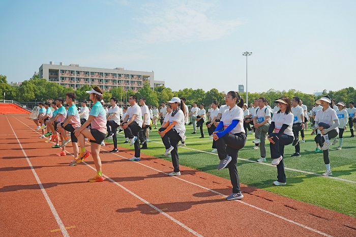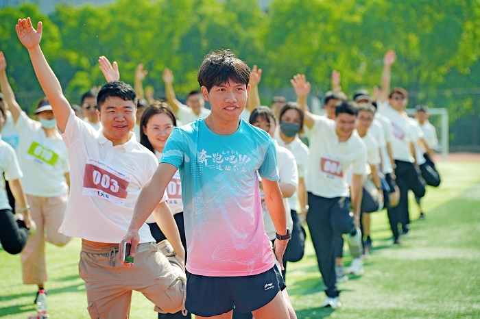 ▲專業(yè)教練帶領全員進行活力十足的熱身操