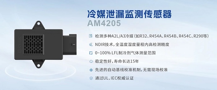 四方光電自2016年起便開始布局冷媒傳感器領(lǐng)域,依托20余年在非分散紅外(NDIR)技術(shù)上的深厚積累,成功開發(fā)出AM4205冷媒泄漏監(jiān)測傳感器。該產(chǎn)品憑借高檢測精度、快速響應(yīng)、長壽命等優(yōu)勢,可精準(zhǔn)檢測R32、R454A、R454B、R454C、R290等多種A2L/A3類冷媒,并已通過UL、IEC等多項(xiàng)國際權(quán)威認(rèn)證,贏得了國內(nèi)外客戶的廣泛認(rèn)可。