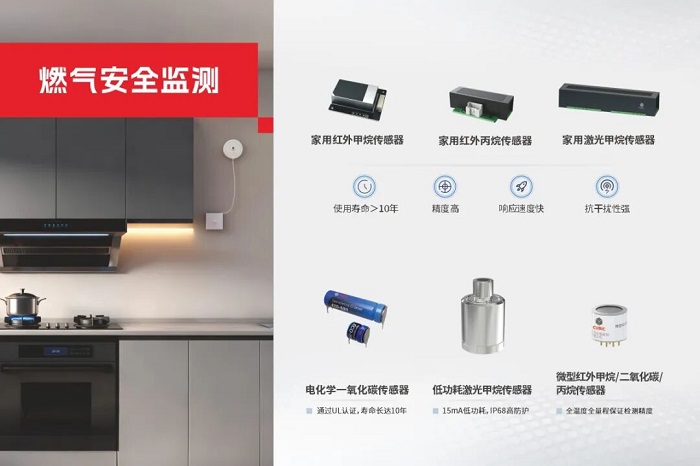 家用紅外 / 激光甲烷傳感器、一氧化碳傳感器、低功耗激光甲烷傳感器等核心產(chǎn)品,可精準(zhǔn)監(jiān)測(cè)燃?xì)庑孤?、有毒氣體濃度等風(fēng)險(xiǎn),適配家庭廚房、燃?xì)夤艿赖榷鄨?chǎng)景,響應(yīng)速度快、檢測(cè)精度高,從源頭規(guī)避安全隱患,精準(zhǔn)守護(hù)家庭與工商業(yè)場(chǎng)景用氣安全。