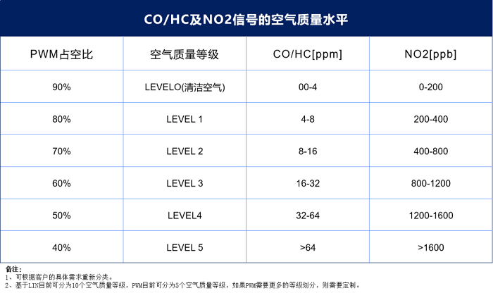 基于自主研發(fā)的MEMS MOX芯片,公司推出了車規(guī)級(jí)空氣質(zhì)量傳感器AQM-1020。產(chǎn)品通過材料組合與智能微分算法,可精準(zhǔn)識(shí)別NO?、CO/HC等氣體(可擴(kuò)展NH?/SO?),輸出空氣質(zhì)量等級(jí)判定,并聯(lián)動(dòng)空調(diào)ECU自動(dòng)調(diào)節(jié)進(jìn)氣閥門,智能維持車內(nèi)空氣清新。