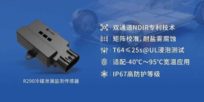R290規(guī)?;瘧?yīng)用還有一道必須跨越的關(guān)鍵關(guān)卡——安全。R290屬于A3類高可燃性制冷劑,爆炸下限僅為2.1%,一旦發(fā)生冷媒泄漏,在小空間的熱管理系統(tǒng)內(nèi)部會迅速累積達(dá)到危險閾值,影響司乘安全,嚴(yán)重引發(fā)爆炸隱患。而R290泄漏監(jiān)測傳感器的精準(zhǔn)監(jiān)測無疑是其安全應(yīng)用的“通行證”。